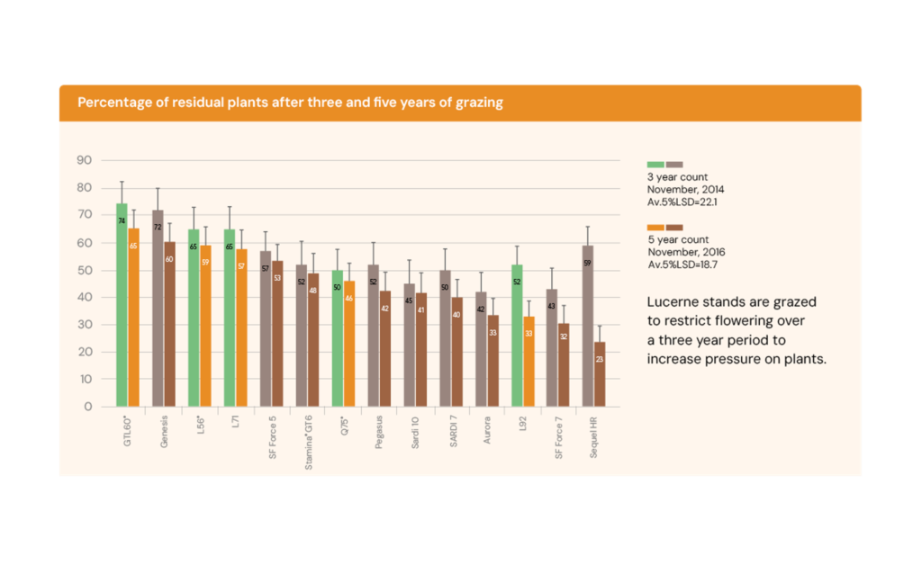 Through our lucerne breeding program, more selections are made with grazing tolerance as a core trait – giving confidence new varieties will persist and perform in real grazing systems. This rigorous process separates short-term performers from lucerne bred to last.