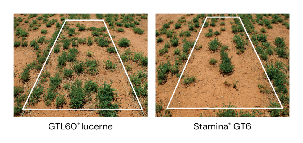 Developed in partnership with NSW DPI and IP Australia, the protocol measures true grazing tolerance by repeatedly grazing the lucerne under controlled conditions that reflect real on-farm pressure. After establishment, the lucerne was grazed about every three weeks (or as required) to a residual height of around 30mm.